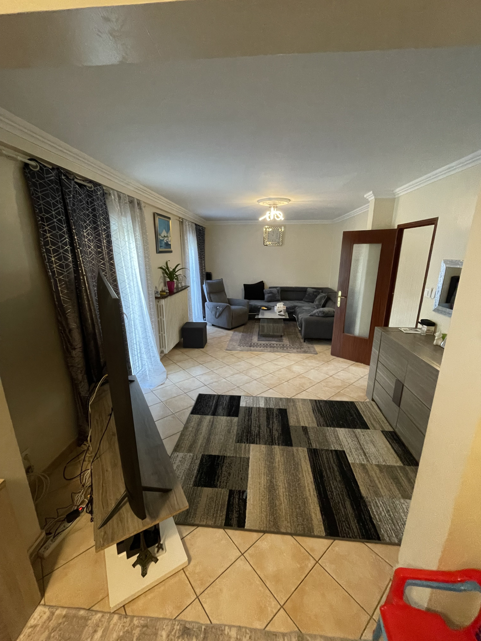 Le rez de chaussée est composé d'une entrée de 7m2, d'une cuisine fermée équipée de 10m2, un séjour salle à manger de 31m2, un WC et un garage de 18m2.