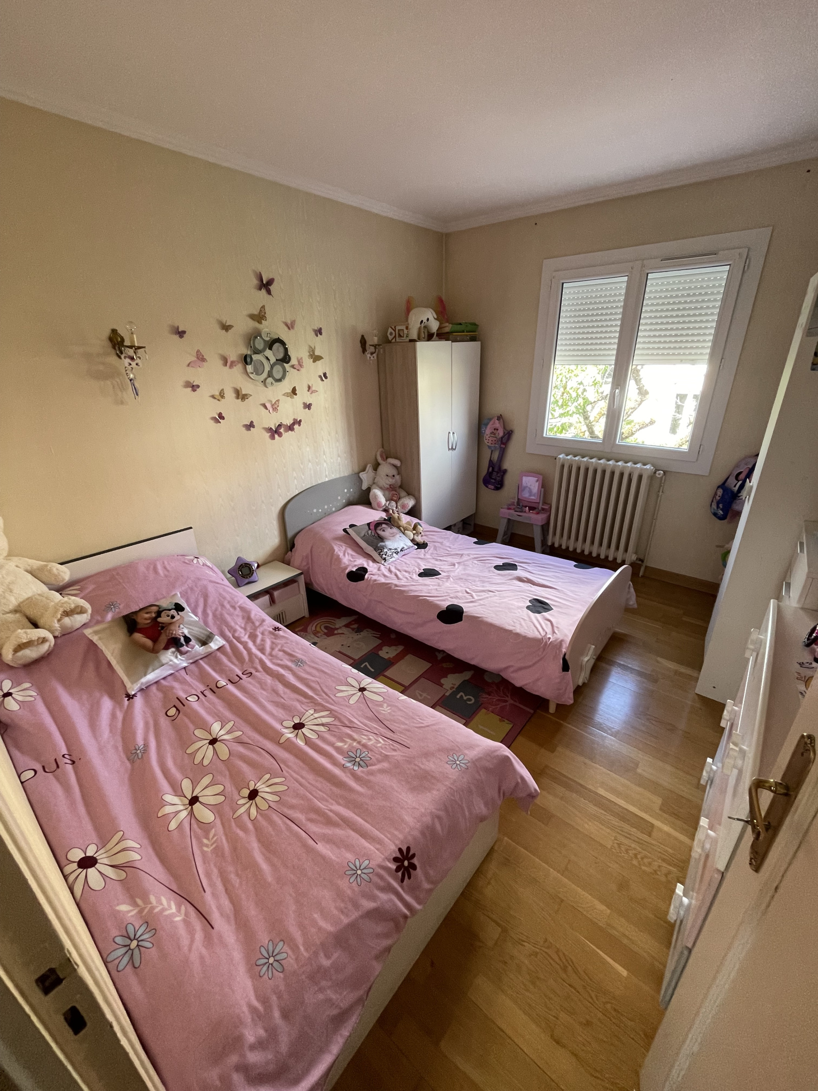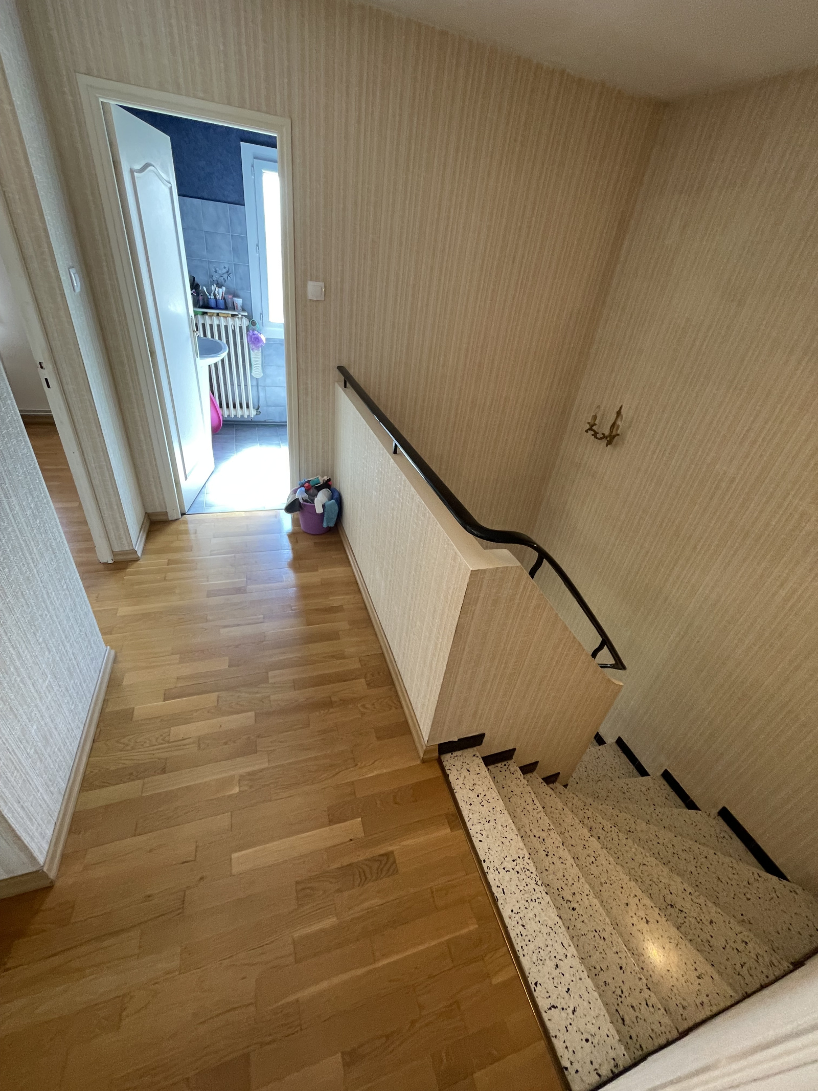 L'étage comporte trois chambres dont les srfaces avoisinent les 10.5m2 et une salle de bains avec WC de 10m2.